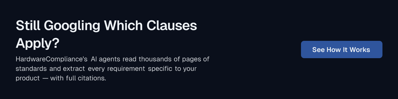 If you've ever stared down a 400-page IEC standard and thought, "Which of these clauses actually apply to my product?" — you already know the problem this article is about. Hardware compliance isn't just paperwork. It's a labyrinth of overlapping regulations, materials-specific rules, and certification bodies, all of which need to be interpreted before you can even begin gathering evidence or writing a test plan.