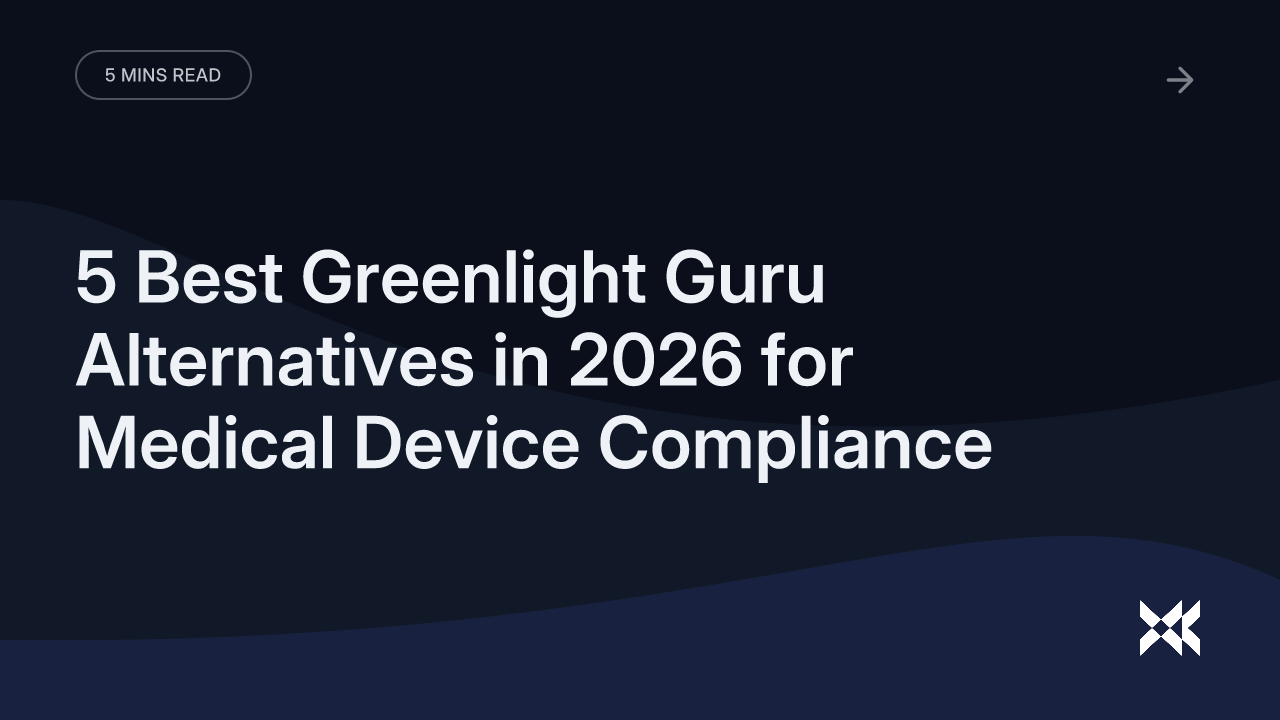 This article covers five of the best Greenlight Guru alternatives in 2026, with a focus on teams navigating the real compliance challenges: FDA 510(k) submissions, EU Medical Device Regulation (MDR) technical files, ISO 13485 audits, and the documentation volume that goes with all of it.