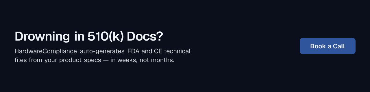 But if the bottleneck isn't document storage — it's the months your team spends figuring out which standards apply, manually drafting technical files, and wading through thousands of pages of FDA guidance before you can even start a submission — a different kind of tool is worth looking at. HardwareCompliance's AI agents surface every applicable FDA 510(k), CE marking, and ISO 13485 requirement against your specific product specs, then auto-generate the technical documentation your submission needs. If your product launch is blocked by manual compliance research and documentation, a call with HardwareCompliance could be worth the hour — book a call to learn more.