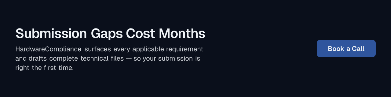 HardwareCompliance is an AI-powered, end-to-end compliance platform built for hardware companies — including medical device teams navigating FDA 510(k) submissions and CE marking under EU MDR.