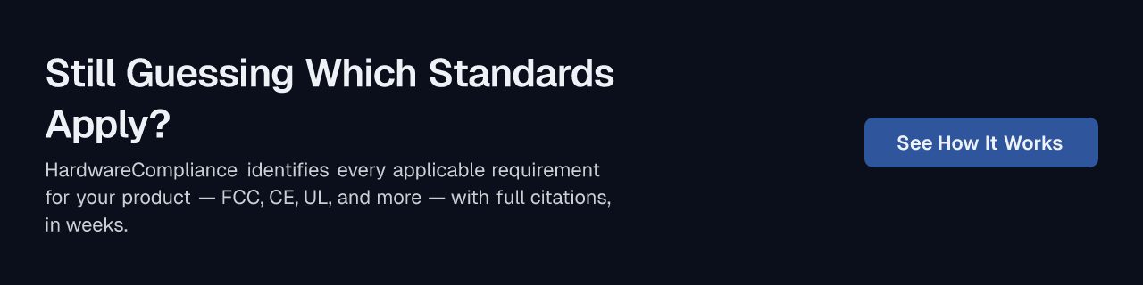 The cost of a compliance misstep is a delayed launch. If you'd rather automate the roadmap than manage it manually, book a call to see how HardwareCompliance's AI-driven platform can help.