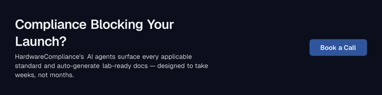 Platforms like HardwareCompliance are accelerating this shift further, replacing months of consulting engagement with an AI-driven workflow designed to take weeks. For hardware teams serious about scaling across markets, that's not just a compliance tool. It's a competitive advantage.