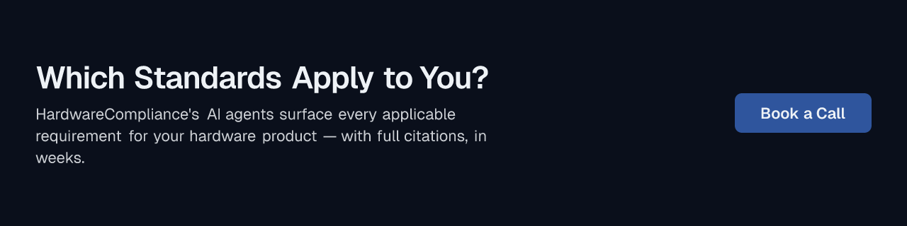 If your product launch is blocked by compliance, a conversation with HardwareCompliance can show you how AI-driven regulatory research gets you lab-ready in weeks, not months. Book a call to see if it fits your product.